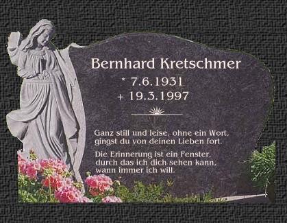 Er starb am 19.03.1997 nach langer Krankheit. Da er mal irgendwann erwähnte, wenn es mal so weit sein sollte, möchte er auf jeden Fall auf einem bestimmten Friedhof beigesetzt werden, wollten wir ihm seinen Wunsch natürlich erfüllen. Allerdings war diese Bitte meines Vaters mit einer schweren Aufgabe belastet. Auf diesem Friedhof wurden heute keine Erdbestattungen mehr durchgeführt sondern nur noch Urnenbeisetzungen. Es war furchtbar. Wir waren alle hin und her gerissen, da wir mit einer Urnenbeisetzung nicht gerechnet hatten und eigentlich auch gar nicht damit einverstanden waren. Es ist schon schlimm, wenn man drei Tage nach dem Ableben eines geliebten Menschen hinter dem Sarg hermarschieren muss, aber wenn man drei Wochen später hinter einer Urne hermarschiert, kann man dieses Gefühl kaum beschreiben. Ein stattlicher, kräftiger Mann als Symbol in einer Urne. Unvorstellbar.